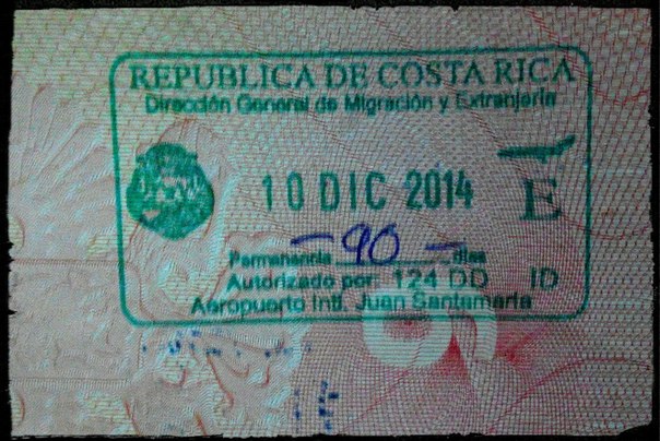 Там вас обязательно спросят о сроке пребывания в стране. Если у вас есть обратные билеты или билеты на вылет в третью страну, то вам стоит показать их. Срок безвизового пребывания в Коста Рике ограничен тремя месяцами (90 дней) и вы смело можете брать билеты с разбросом дат 85-89 суток, вам сразу поставят 90-дневную визу и вам не придется её продлевать. Тем же, у кого обратных билетов нет или они датированы числом меньше чем через месяц, будет поставлена 30-дневная виза, которую в случае увеличения срока пребывания в Коста Рике нужно будет продлить.