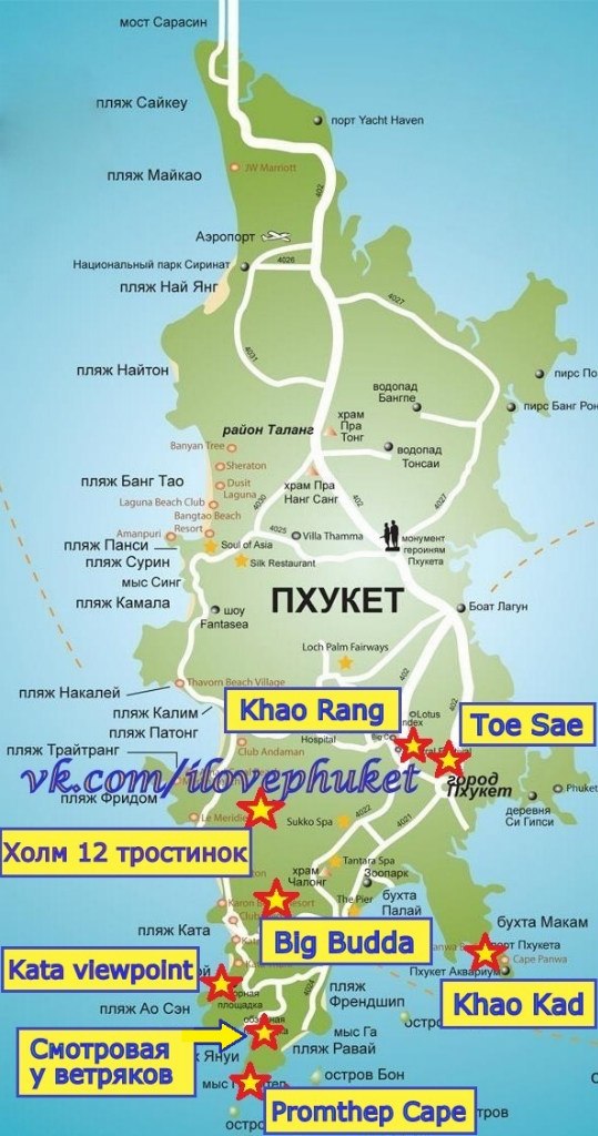 Большой популярностью пользуется экскурсия "Все обзорные площадки Пхукета", позволяющая посетить сразу несколько памятных мест за неполный день и более-менее приличную сумму. Если ехать самостоятельно, то достаточно взять тук-тук на 3-4 часа и заплатить таксисту от 400 до 600 бат.Пхукет насчитывает, ни много ни мало, 8 популярных среди туристов обзорных площадок. Однако, чтобы полноценно насладиться красотами острова и видами на море, достаточно посетить всего три из них: Статую Большого Будды на горе, смотровую у ветряков и площадку на оконечности мыса Promthep Cape. Первое место вообще обязательно для посещения всеми туристами, прибывшими на Пхукет, потому как отсюда видно сразу две стороны острова: залив Чалонг на востоке и бухту Ката на западе.