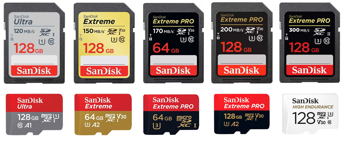 - Линейка SanDisk Extreme - UHS-3, скорость 150/60 МБ/с