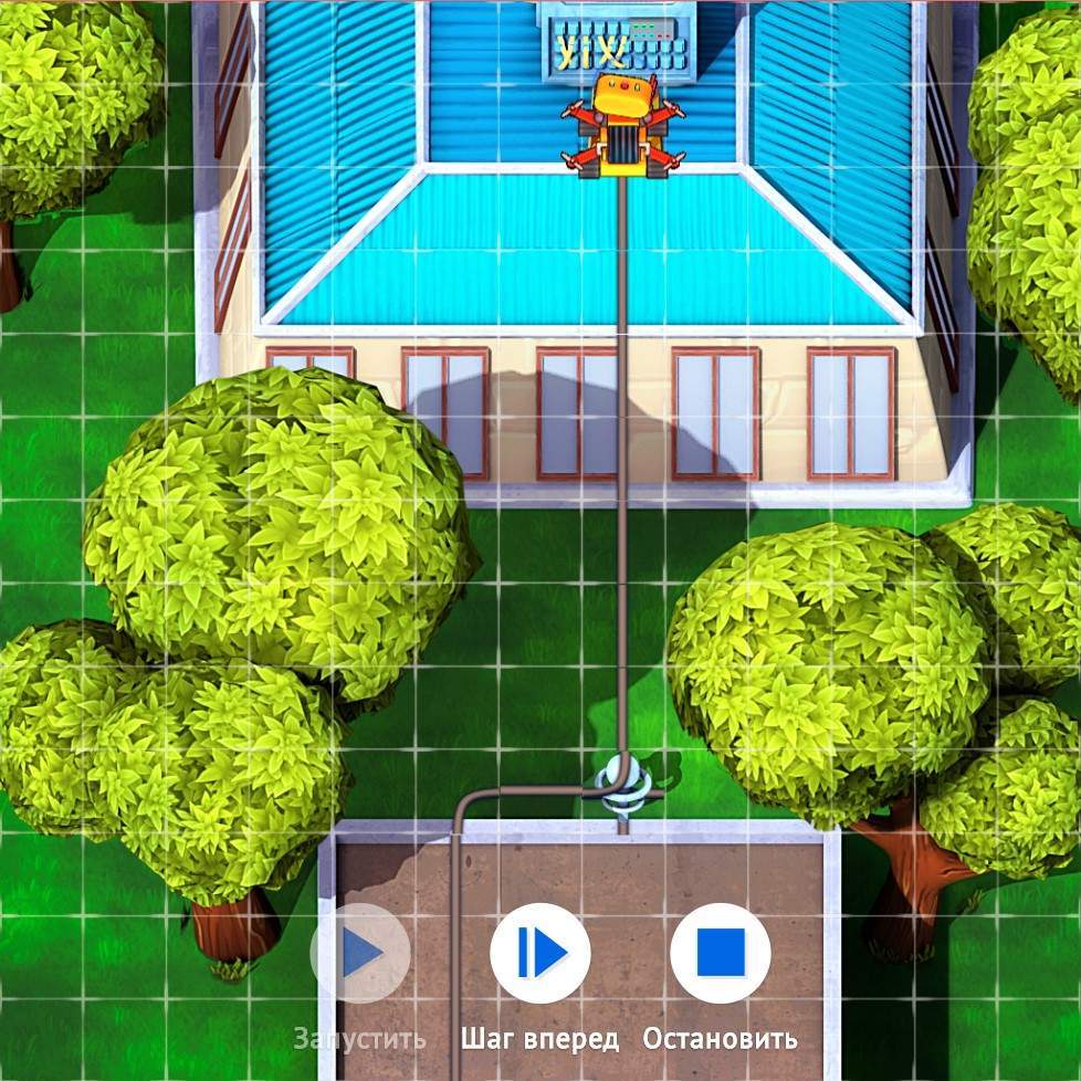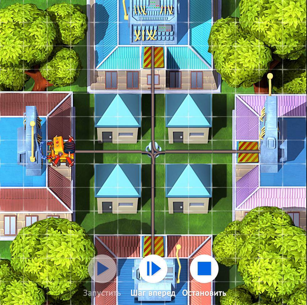 Летим дальше. Нужно подключить ещё два дома к Интернету через кабель. Подъезжай к выделенной клетке и используй команду plug, чтобы робот мог подсоединить кабель.