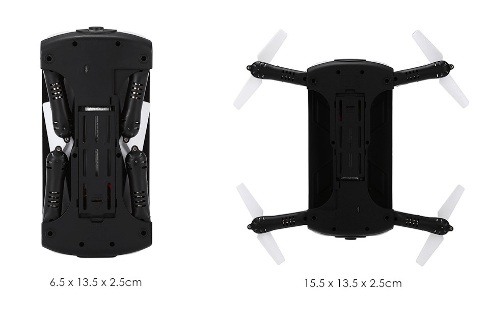 JJRC H37 Elfie - ультрабюджетный селфи-дрон, который является доступным решением для широкой аудитории желающих прикоснуться к этому сегменту рынка. JJRC H37 Elfie сделан из пластика, а дизайн позаимствован у Zerotech Dobby. В этом нет ничего плохого, так как всматриваться во внешность летательных аппаратов вряд ли кто-то будет. JJRC H37 Elfie умеет складываться и раскладываться.pack 1 jjrc h37 В сложенном формате моторчики полностью прячутся внутри корпуса устройства. Весь процесс подготовки к полёту занимает порядка пяти секунд. На верней грани JJRC H37 Elfie находится одна большая механическая кнопка включения. Нажали на неё - запустили коптер. Дрон имеет интересную особенность: у него есть белые и красные светодиоды, что помогает следить за дроном в тёмное время суток. Естественно, за 50 долларов у миниатюрного дрона стоят коллекторные моторы. Что такого плохого в этом типе моторов? Они шумные из-за наличия в их конструкции дополнительной шестеренки.
