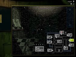 Призрак Фокси можно ожидать в офисе. Чтобы он не успел атаковать, нужно постараться полностью игнорировать фантом. Это очень сложно, учитывая то, что в темноте призрак маскота сложно заметить. На камерах его увидеть невозможно. Активен с четвертой ночи.
