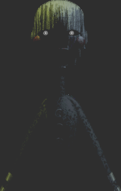 Phantom Puppet также не умеет убивать. Появляется на восьмой камере. Как только призрак был замечен, нужно срочно переключиться и убрать планшет. До конца ночи на камеру с фантомом заходить не стоит. Марионетка не нападает на героя, а становится перед его глазами и не позволяет 5-6 секунд открывать оба планшета.