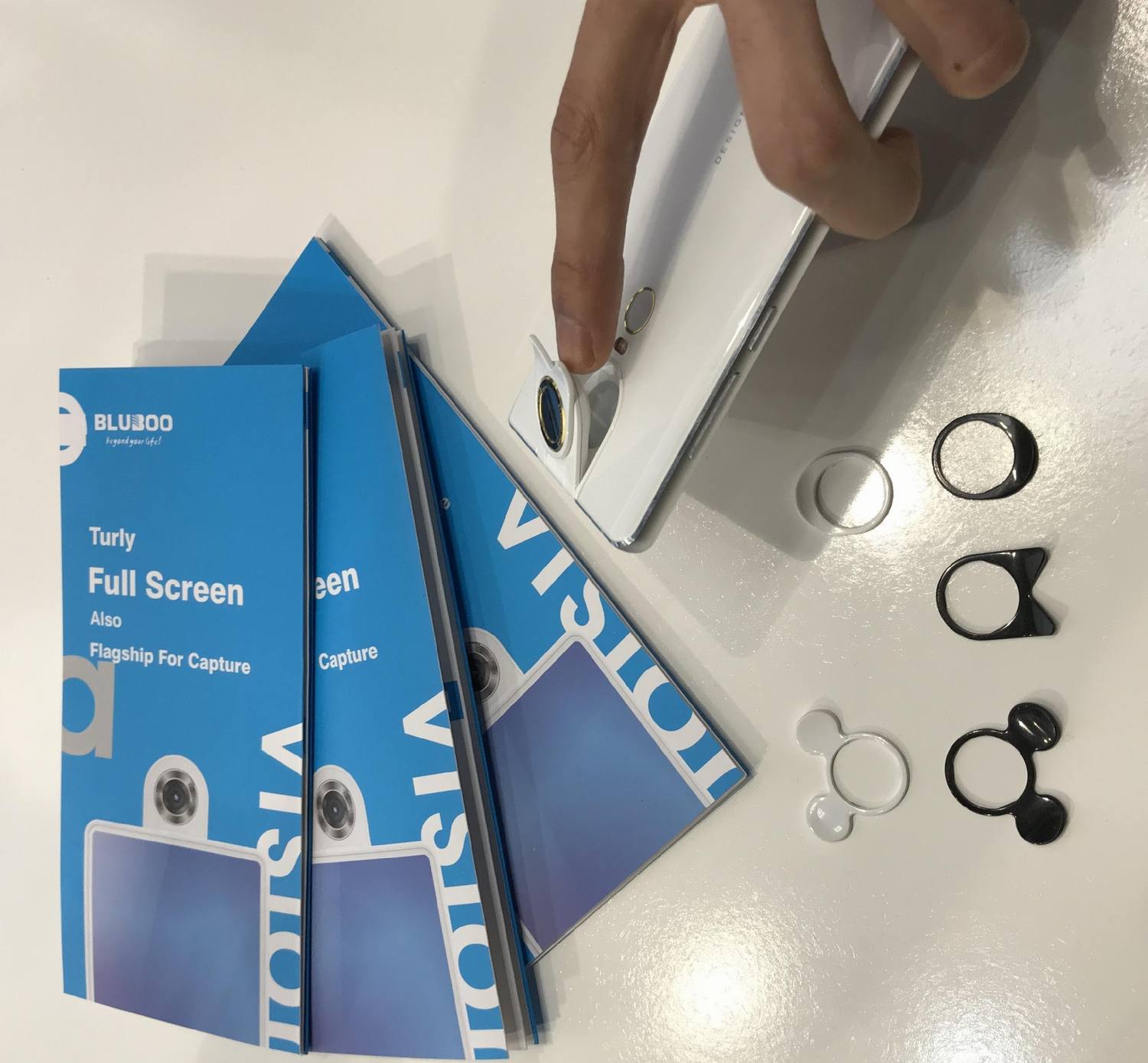 Чтобы быстро и легко перевернуть камеру из положения "основная" в "фронтальная", инженеры Bluboo придумали специальный аксессуар, который цепляется на глазок. Он позволяет не только в мгновение перевернуть камеру, но и украсить ее скучноватый вид. Кроме того, аксессуары абсолютно бесплатные, имеют различные цветовые решения и поставляются вместе со смартфоном в количестве нескольких штук.
