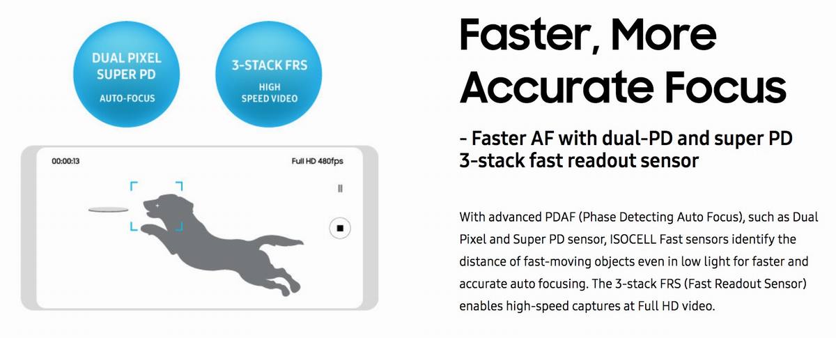 Не забыли подтянуть и возможности видеосъемки в новых модулях камер. Отныне Full HD видео получится записать на ошеломляющей скорости до 480 кадров в секунду. В то же время в HD-разрешении новые галактики смогут писать видеоролики на скорости до 960 к/сек. Подобную скорость поддерживает прошлогодний топовый сенсор от компании Sony IMX400 с разрешением 19 МП. Чтобы было понятно, все флагманы 2017 года позволяли снимать видео на максимальной скорости до 240 fps и только в HD-качестве.