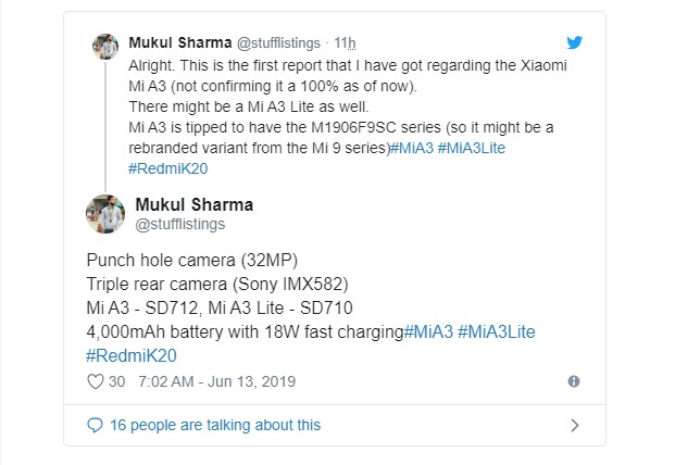 Также стала известна емкость аккумуляторов в Xiaomi Mi A3 и Mi A3 Lite. Оба девайса получат АКБ на 4000 мАч, что для старшей версии окажется в новинку. Также заявлена поддержка устройствами быстрой зарядки мощностью до 18 Вт. Однако остается открытым вопрос о наличии в девайсах модуля NFC, из-за котрой, кстати, предшественники так и не стали хитами продаж, лишь приблизившись к заветной черте, после которой и наступает та самая слава. Инсайдер из Индии об NFC решил ничего не говорить, однако более ранние утечки гласили о присутствии этого модуля в будущих Xiaomi Mi A3 и Mi A3 Lite. Мы же склоняемся к версии, что NFC в новинках быть! Если уже Lite-версию по каким-то причинам NFC и лишат, то Mi A3 точно им обзаведется.
