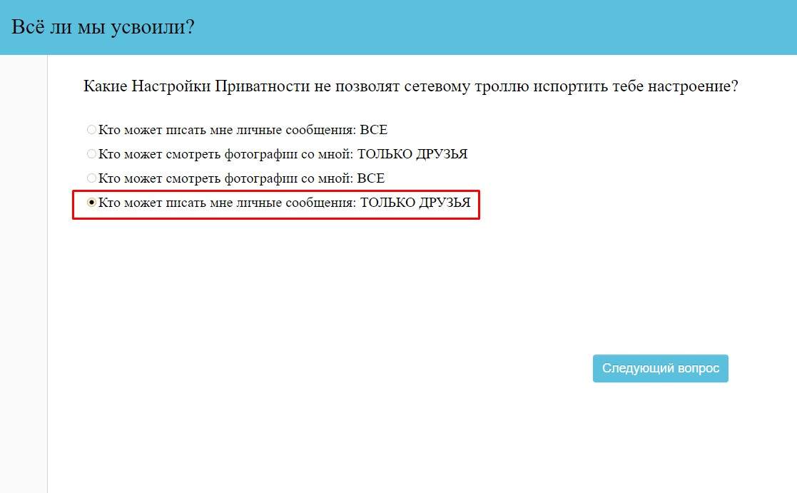 Повторение - мать учения. В самом конце вам предложат пройти тест, в котором необходимо выбрать правильные ответы для подкрепления полученных знаний. Если что-то не знаете, забыли или не поняли, то воспользуйтесь нашими ответами (смотрите картинки).