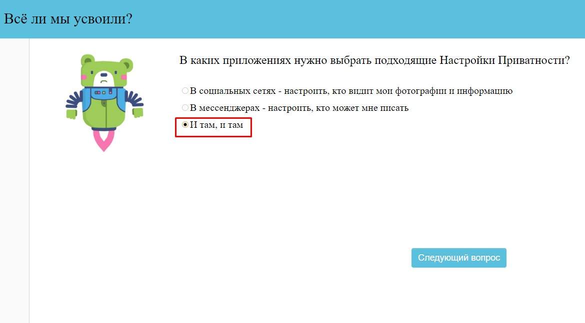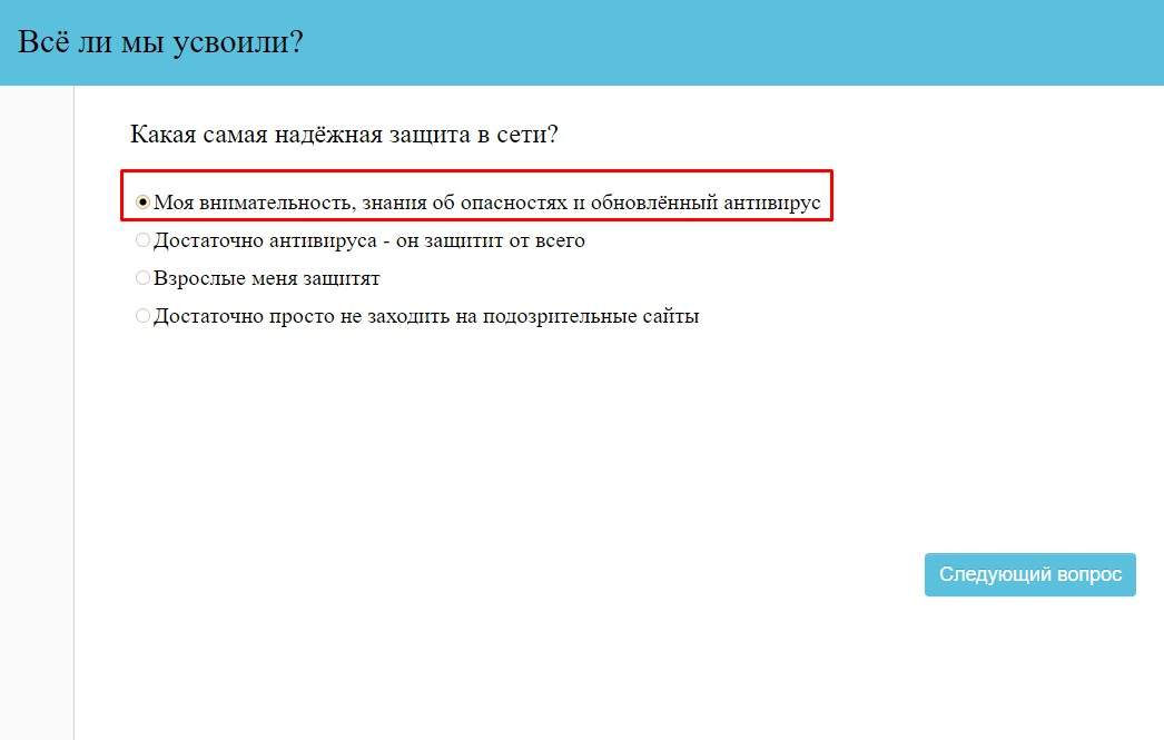 Урок цифры 2019 (5-8 класс) - ответы на шестой уровень "Кибербезопасности в Интернете"