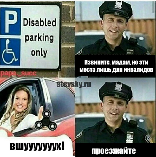 Мем про спиннер и парковку для инвалидов