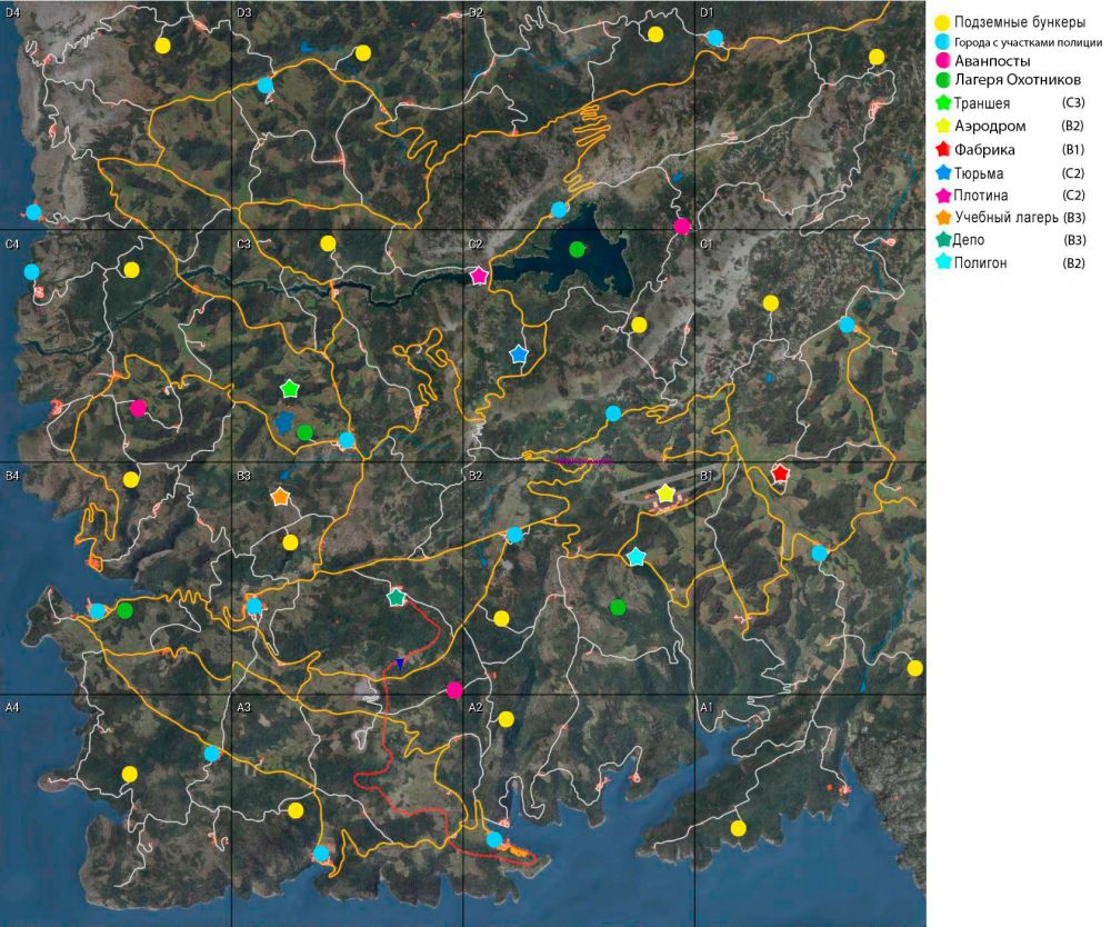 Без хорошего лута в СКАМ вы никто. Поэтому его нужно уметь искать и нужно знать где искать. Лут в каждой катке на карте выкатывается в рандомном порядке, поэтому никто не знает, где будет «грибное» место. Для того чтобы найти конкретные места в SCUM, вам нужно зажать кнопку М – после этого появится карта местности. Ниже мы прикладываем картинку, где размещается самый полезный лут в SCUM.